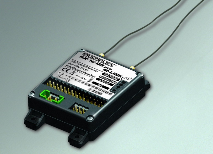 Super 12 kanalni sprejemnik M-LINK MULTIPLEX 2.4 GHz se lahko pohvali s posebno močnim signalom, kar dodatno zagotavlja odlično kakovost. Sprejemniku je možno odstraniti anteno, seveda pa se to razlikuje od modela do modela. Povezava je sestavljena iz visoko kakovostnih pozlačenih kontaktov. Zunanja napajalna enota ni potrebna. Poleg tega je možno vsak priključek še posebej zaščititi pred preobremenitvijo in kratkemu stiku, tako da če se napaka zgodi v enem servu bo drugi servo ostal nepoškodovan.